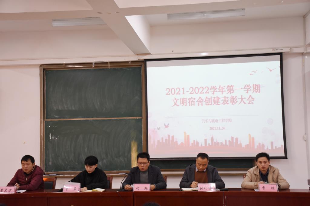 为建设和谐美好的宿舍生活环境,提高学生文明素质。11月24日下午,汽电学院召开了2021-2022学年第一学期文明宿舍创建表彰大会。学院党总支书记代翔、党总支副书记张礼涛、团总支书记李明、学工办公室主任翟志方、辅导员代表及全院112位宿舍长参加此次大会,大会由副院长曾勇主持。